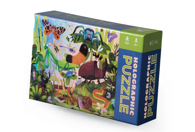 Children will delight in exploring this gorgeously illustrated Backyard Bugs puzzle in our top-selling holographic format - but in a new mini size with 50-piece count!