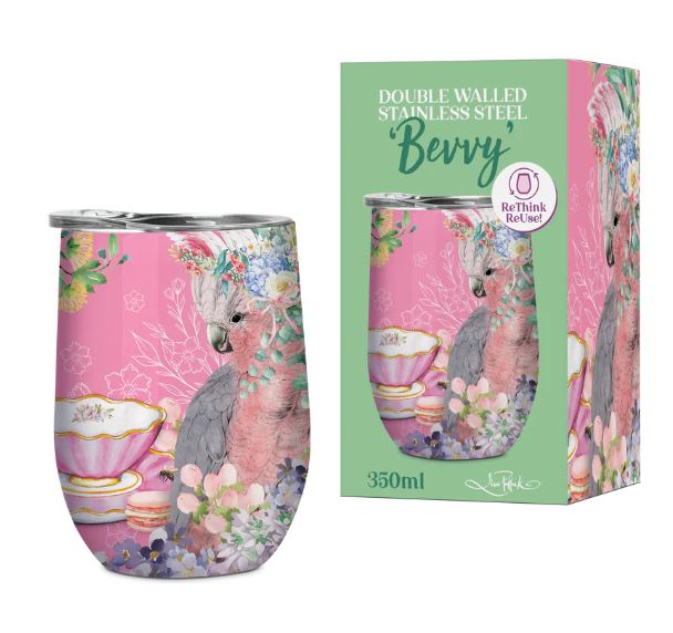 Time for a Bevvy? The 350ml 'Bevvy' Travel Mug has you covered! Made from superior stainless steel and double walled it keeps drinks cold for 12hrs, or your coffee hot for 6hrs! Complete with spill proof lid which also fits a straw. This one features our beautiful Dreamy Fields design & comes in a fully printed, matching gift box making it the perfect pressie for you or a friend!