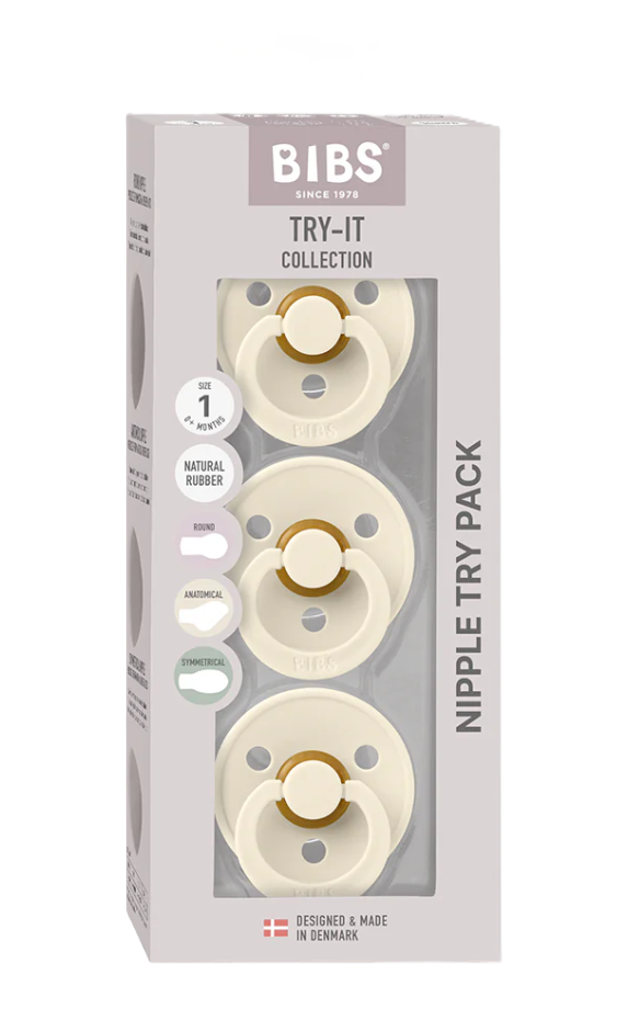 When it comes to finding the right dummy for your baby, there’s no such thing as a one-size-fits-all solution. With different facial features, sucking preferences, and oral development, some dummies will simply feel more comfortable than others. BIBS' Try-It Collection simplifies the discovery process, offering three different teat shapes to experiment with, all crafted from soft and flexible natural rubber latex materials.