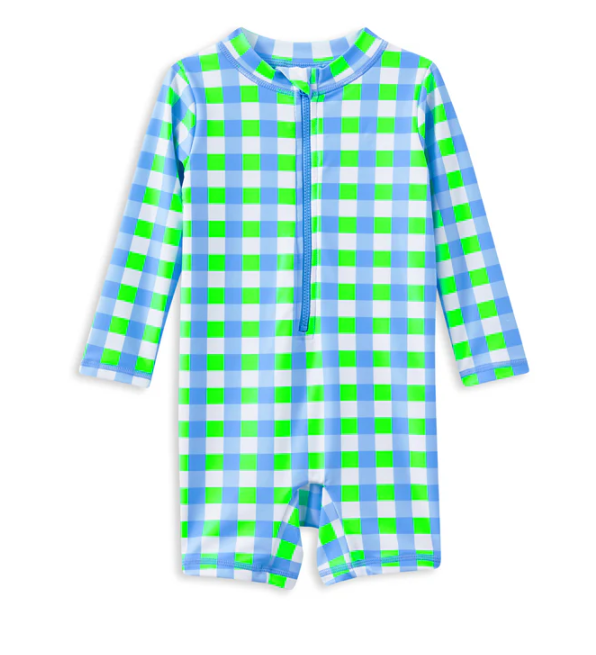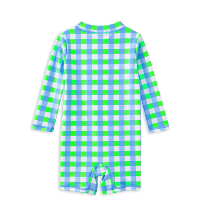 Milky Clothing Check Long Sleeve Swimsuit. Keep the sun off their skin and the wind from their shoulders with the Check Long Sleeve Swimsuit. This swimsuit has full-length sleeves and UPF 50+ fabric offers maximum protection. Complete the look with our Summer Check Sun Hat and stay sun smart this Summer with Milky Clothing.