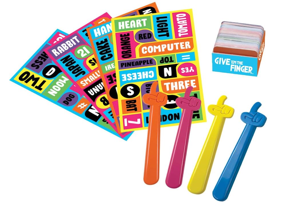 Give ’em the finger – the flipping, switching, smashing, fast-paced action trivia game that will have you on the edge of your seat. The rules are simple, the question master reads out a question and you and your fellow competitors must use your eagle eyes, racing to locate the answer that is hidden in plain sight somewhere on the double-sided game boards. Using quick thinking and lightening reflexes, the first player to spot the correct answer must slam their finger pointer down on the answer and shout “smash down” to claim the question card. The question master can choose to move or flip the boards at any time to mix up the answers for an ever-changing trivia game.