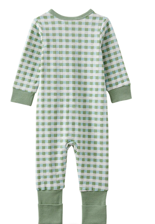 The fold-over feet offer added versatility, keeping your little one’s tiny toes snug and warm or allowing them to breathe on warmer days. The delightful gingham check print is a perfect unisex option, making it an excellent choice whether you know your baby's sex or not.