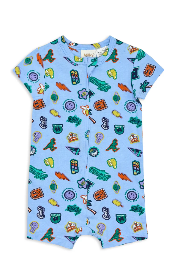 Milky Clothing Happy Zip Romper is the ultimate outfit for comfort, style, and practicality for your little one! Crafted with care, this romper features a vibrant blue base with a playful all-over print, adding a fun and cheerful vibe to your baby's wardrobe. The smart 2-way zip at the center front ensures effortless dressing and quick nappy changes, making it easy for parents to keep up with their babys busy day. Soft, breathable fabric guarantees all-day comfort, while the snug fit ensures your little one stays cozy and stylish from playtime to naptime. Perfect for everyday wear or as a thoughtful gift, this romper is an essential addition to any baby wardrobe!
