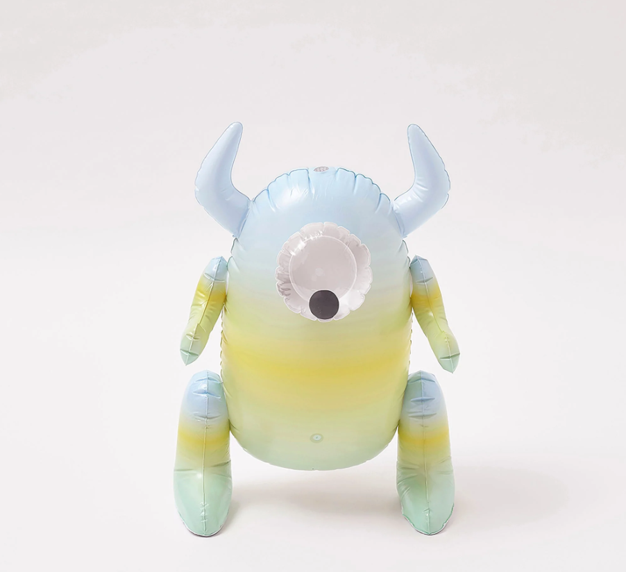 Make it a sun shower all summer long with the Monty the Monster Inflatable Sprinkler. This cute little guy attaches to your garden hose and sprays water from his head for outdoor fun! With a playful 3-D googly eye and on-trend ombre print, little kids will love to play with Monty. Set up the Inflatable sprinkler today and enjoy warm summer afternoons, cooling off and getting soaked with SUNNYLiFE!