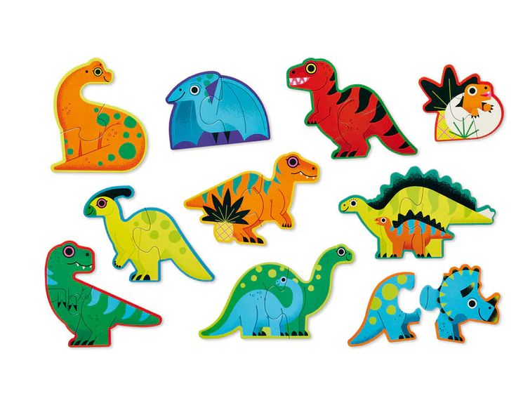 - 10 different 2-piece puzzles with pieces perfect for little hands