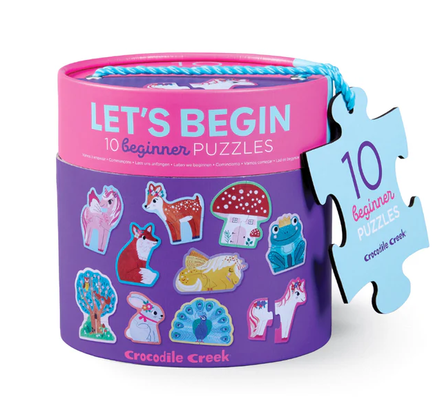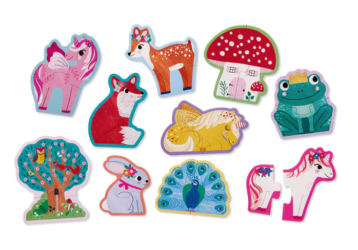 - 10 different 2-piece puzzles with pieces perfect for little hands
